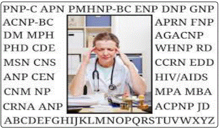 Peruse any poster presentation at a nursing conference and you will be in awe of the brilliant scientific minds of nurse researchers. Their works demonstrate the logical steps of research and scholarly works. When reading their credentials some list RN first, others last, PhD first, others last, some list both B.S.N and M.S.N. there is no rhyme or reason. The credentials game aptly described the credential mess as alphabet soup [1]. This is confusing to health care providers, the public, third party payers, and peers [1]. The purpose of this article to shed current light on why it is important to list your credentials uniformly, what that order is and why, the six basics of listing, legal use, multiple credentials, and the importance of uniformity.