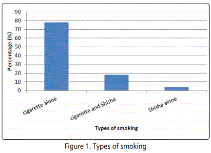 Results: Out of a total of 1000 known smokers investigated in this study, it was found that the vast majority (97%) of the participants was males, and the largest percentage (66%) was in the age range from 20-30 years. The type of smoking experienced is cigarette smoking alone (78%) and combination of cigarette and shisha smoking (18%). Shisha smoking alone was encountered only in 4% of smokers. The reason behind smoking was reported to be due to mood alteration (44%) and effects of friends (41%). Less commonly (15%) smoking was without any apparent reason.