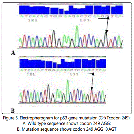 Conclusion: P53 gene mutation (G to T codon 249) may be regarded as an early molecular marker in the detection of HCC in Egyptian patients.