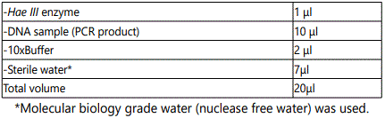 The test samples were digested with restriction enzyme HaeIII Enzyme (provided by Fermentas Life Science, lot no 00011400.