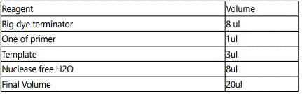 Preparation of the cycle sequence reaction mixture for the gene was done as the following: