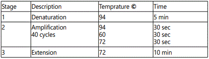 F: 5′-CTTGCCACAGGTCTCCCCAA-3′ and R:5′-AGGGGTCAGCGGCAAGCAGA-3′. The 25 µl reaction included 18.3 µl ddH2O, 2.5 µl 10 × buffer, 1 µl dNTPs, 0.5 µl primer 1, 0.5 µl primer 2, 0.2 µl Taq DNA polymerase, 2 µl DNA templates. (Roche Molecular Biochemicals). The samples were mainly, [denaturated at 94C for 5min, amplification 40 cycles (94 C for 30 seconds, 60 C for 35 sec,72 C for 30 sec) followed by final extension at 72 C for 10 min ]. Visualization of amplified material by gel electrophoresis apparatus (Biometra, Germany).The amplification products (254 bp) were visualized by staining with ethidium bromide, after electrophoresis on 2 % agarose gel.