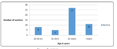 31.72% 0-10 years, 28.20% 21-30 years respectively. Thus we found that maximum number of workers had exposure of 11-