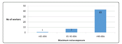 Thus there was no statistically significant relationship between average and minimum noise exposure. But maximum noise exposure has statistically significant relationship with NIHL.