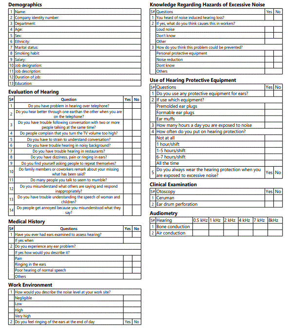 2. A questionnaire regarding subjective hearing loss of the workers; as well as their knowledge, attitude and behavior regarding excessive noise.