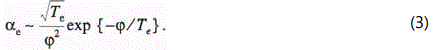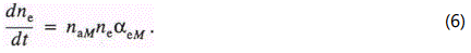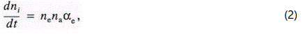 Here dni/dt was replaced by dne/dt, in compliance with assumptions made above. In turn, the ionization rate of atoms of a fixed impurity is determined by the increase of electronic energy according to relation (3), and the value of dni/dt is determined by ne, in accordance with Eq. (2). It should be noted that the question as to which quantity, ne or Te, governs the increase of αe, remains unanswered. Solution of this problem is rather difficult because the quantities ne and Te are closely coupled to each other, and Eq. (5) describes this coupling only approximately.