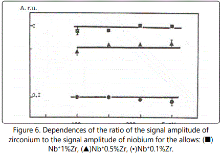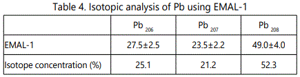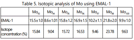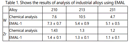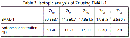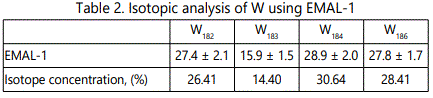EMAL-1 was used for isotopic analysis of Zr, Mo, W, Pb in the alloys with niobium and pure materials. As seen from Tables 2–5 relative error does not exceed 10%, except zirconium (20%), when the isotope concentration differ significantly.