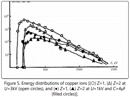 The analysis of the results obtained and the qualitative peculiarities of the laser plasma pinching indicate the need to take the advantage of the ‘fast’ (10-7s) energy input into the discharge (Figure 24). The dynamics of the formation of the charge and energy distribution of the output ion beam at a higher energy input and the electric field up to 103V/cm is determined by an increase in the compression efficiency of the laser plasma by the magnetic field of the increasing discharge current. The specific shape of the spectra of multicharged ions, to a certain extent, correlates with the spectra obtained in experiments with laser plasma at high laser intensities, which opens up new possibilities in the study of fundamental processes in laser plasma itself.