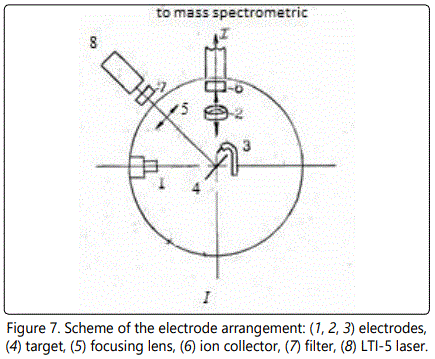 Of particular interest is the effect of an electric field on the laser plasma in experiments in which the electrode is placed at the back of the sample. For a detailed picture of the influence of the electrode potential on the characteristics of the products resulting from the expansion of laser plasma, use is made of the time-of-flight mass spectrometric technique.