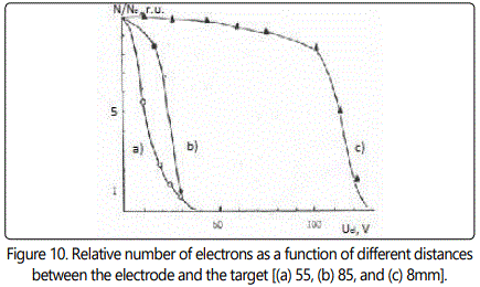Figure 10 shows the changes in the quantitative characteristics of the electrons as a function of voltage applied to the different shape electrodes located at different places of the chamber. Curve