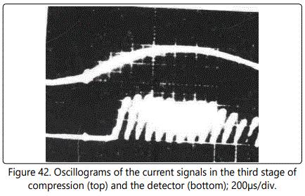 For effective discharge development temporal coincidence of the current maximum flowing through the discharge is important (for the time of maximum compression). The problem is to match the discharge time to the dynamics of motion of the current shell. Since the initial velocity of the shell is large enough V0=106–107cm/s, and the initial conductivity is high (Q=Te1.5), then the use of the usual parameters (C=1–10µF, L=0.1–1µG) is ineffective: the shell accelerates and collapses long before the current reaches a maximum, and so it is necessary to reduce the discharge time Tdis=L00.5/V0 at the same energy, by reducing the inductance and increasing the voltage across the discharge gap. This can also lead to an increase in the rate of the current rise: