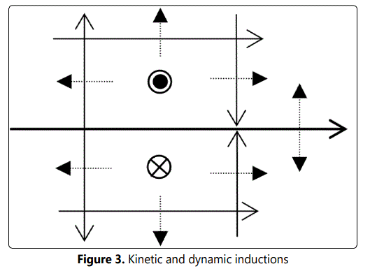 Figure 3 compares the two EM inductions. The current in the central conductor is followed by the circular magnetic field. The transverse motion of a parallel or perpendicular object conductor causes the kinetic induction. Such motion of the carrier, along the field gradient, causes the dynamic induction in the parallel objects only. In the transverse (or circular directions Fig. 2), the field gradient equals to naught. Similar relation may be ascribed to the gravitation on the celestial orbits. The field rotations transverse to their gradients are irrelevant.