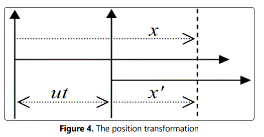 Avoiding or exceeding all these speculations, Hobble’s ratio of the distance and speed at the mutual motion away of two celestial bodies just understands the unique cosmic time. Some local times, deviating from the absolute one, are theoretically inconceivable and practically impossible. The real transformation of the position (Fig. 4), concerning the absolute time, is the only acceptable alternative. Namely, the positions of an object in the two frames differ no more or less but for the mutual distance covered after the initial frame overlap. In the unique space and time, this is the only reasonable relation.