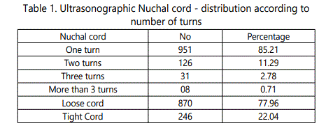 Method: This was a prospective, cross sectional, comparative study carried out in the Kasturba Hospital of MGIMS, Sewagram a rural medical tertiary care institute. All deliveries over a period of one year, were enrollled and studied for nuchal cord, tight or loose cord, number of turns, fetal heart rate irregulaties, pregnancy and perinatal outcome.